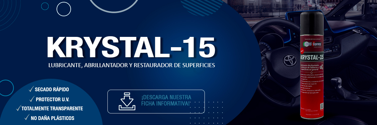 | Descripción Larga: | KRYSTAL-15 SP, esta formulado en base a una mezcla de aditivos y siliconas de la más alta calidad, que al ser aplicada actúa como un restaurador de cualquier tipo de superficie, ya sea natural o sintética, brindando una protección adicional y resistencia a la intemperie y a los rayos ultravioleta (protección U.V.) |