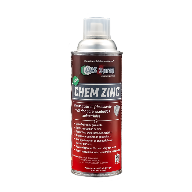 | Descripción Larga: | CHEM ZINC es un recubrimiento que trabaja como ánodo de sacrificio que protege a los metales ferrosos de la corrosión. Por su formulación, CHEM ZINC forma una película protectora con una concentración superior a 90% de zinc metálico(99% de pureza), que crea una barrera entre el medio ambiente y el metal para prevenir la formación y propagación de herrumbre y corrosión. CHEM ZINC se adhiere electroquímicamente a la superficie metálica, brindando la protección del galvanizado en caliente, y protege los metales ferrosos sustancialmente más que las pinturas industriales anticorrosivas de zincromato y otras. Después del curado, el Galvanizado en Frío Instantáneo es altamente resistente al rayado, abollado, abrasión, ambientes corrosivos, niebla salina, calor, humedad y depósitos de sales. |