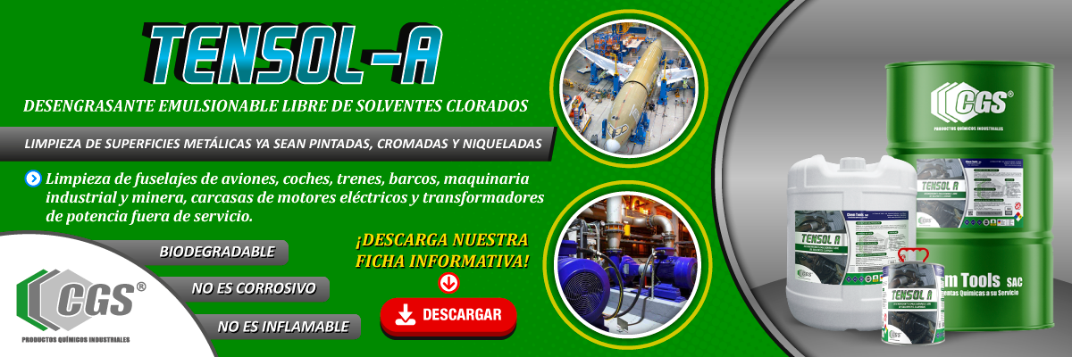 | Descripción Larga: | TENSOL-A, es un desengrasante emulsionable en agua, fabricado a base de una mezcla de solventes biodegradables y aditivos surfactantes, capaz de eliminar especialmente grasas, borras y/o derivados del petróleo, que se acumulan principalmente en los tanques de almacenamiento de crudo, y en los derrames que ocurren en las refinerías, así como en la limpieza de borras y grasas en todo tipo de pisos y equipos mecánicos. TENSOL-A, puede ser usado puro, mezclado con solventes o emulsionado con agua disolviendo y eliminando grasas, hollín, carbón y suciedades apelmazadas. |