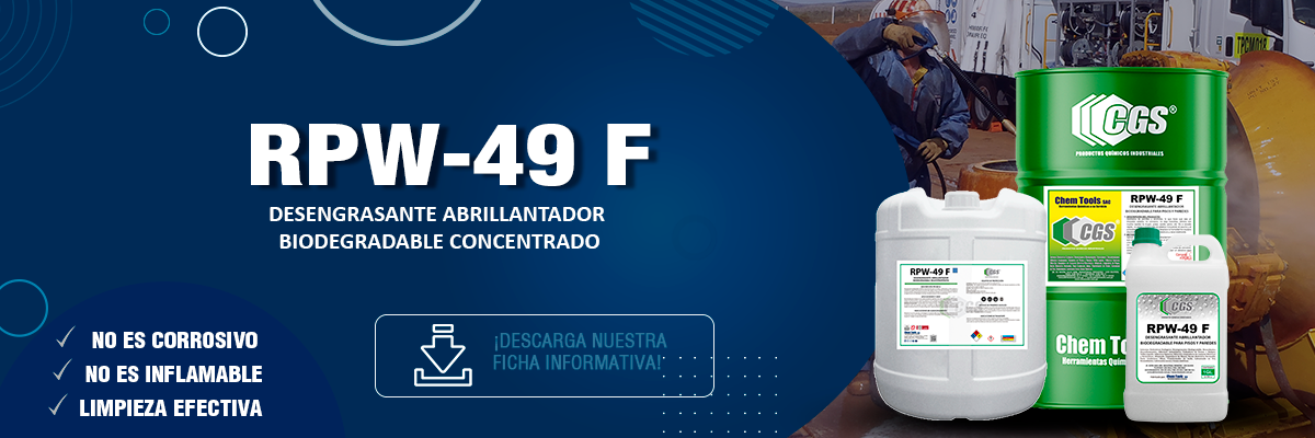 | Descripción Larga: | RPW-49F es una combinación de detergentes sintéticos, con agentes abrillantadores, para ser usado en la limpieza con la finalidad de eliminar en forma agresiva y completa cualquier tipo de grasa ya sea de origen vegetal, animal, o derivados del petróleo, que se acumula en los pisos, paredes, tanques de almacenamiento y contenedores utilizados en la industria en general. RPW-49F también puede ser usado en la limpieza de equipos y maquinaria industrial construidos con cualquier tipo de material. |